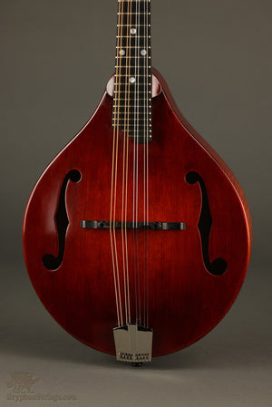 The Kentucky KM-606 takes the classic F-5 design and strips away every cosmetic feature leaving nothing but the elements that make for a great sounding mandolin. The top is hand carved German spruce and the back and sides are Alpine maple. The maple neck has a slim, comfortable feel and the rosewood fretboard has a radius and is fitted with 22 nickel-silver frets. The top, back, neck and headstock are unbound and the finish has simple chocolate brown color. This F-style F-hole mandolin is an excellent choice for an intermediate to advanced player looking for a fine sounding instrument that won’t break the bank. Includes a heavy duty gig bag.