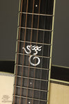 Not your usual Santa Cruz OM, both visually and tonally. The slotted headstock with colorful torch inlay may be what catches your eye, but the overall tonal power and headroom is what your ear will notice, thanks in part to the Adirondack spruce top. This custom SCGC model has been on order for many months but it's been worth the wait!